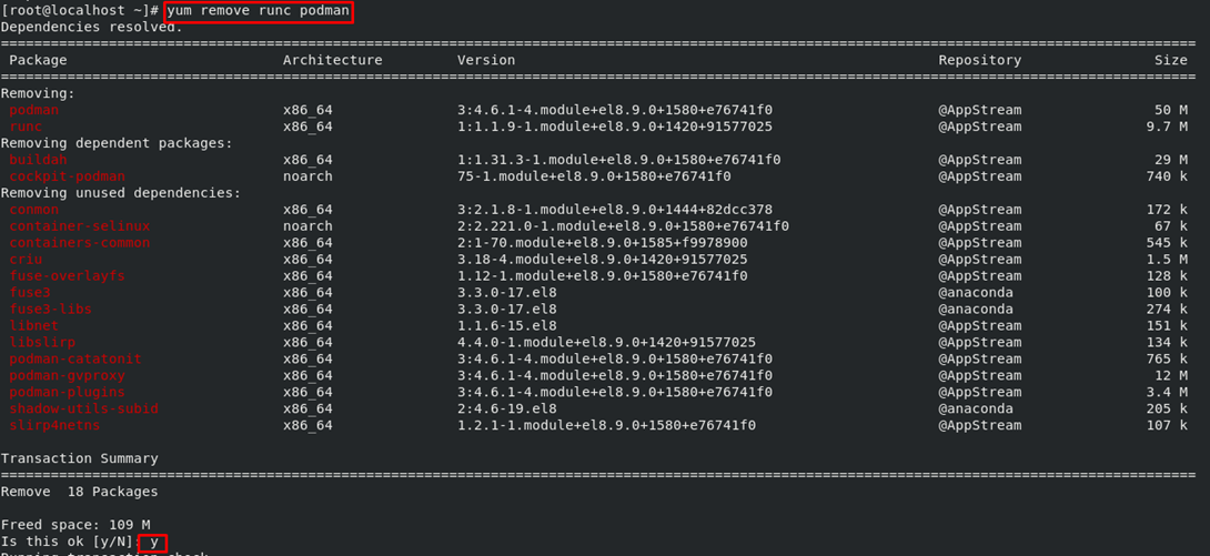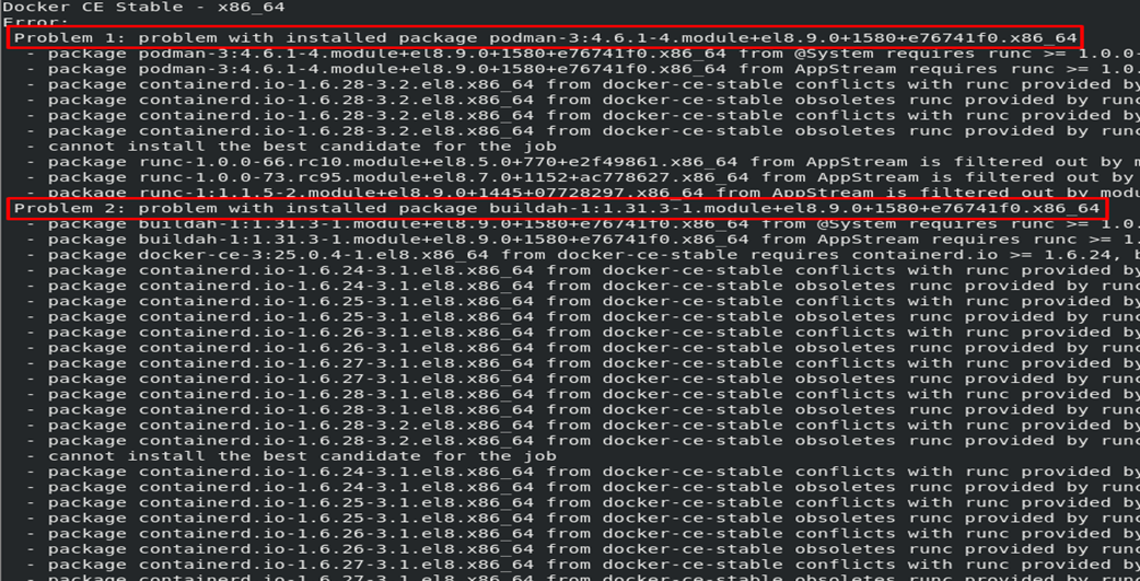 yum remove runc podman 으로 현 버전 삭제 (현장에선 협의 후 진행해야 하므로 각별히 주의)